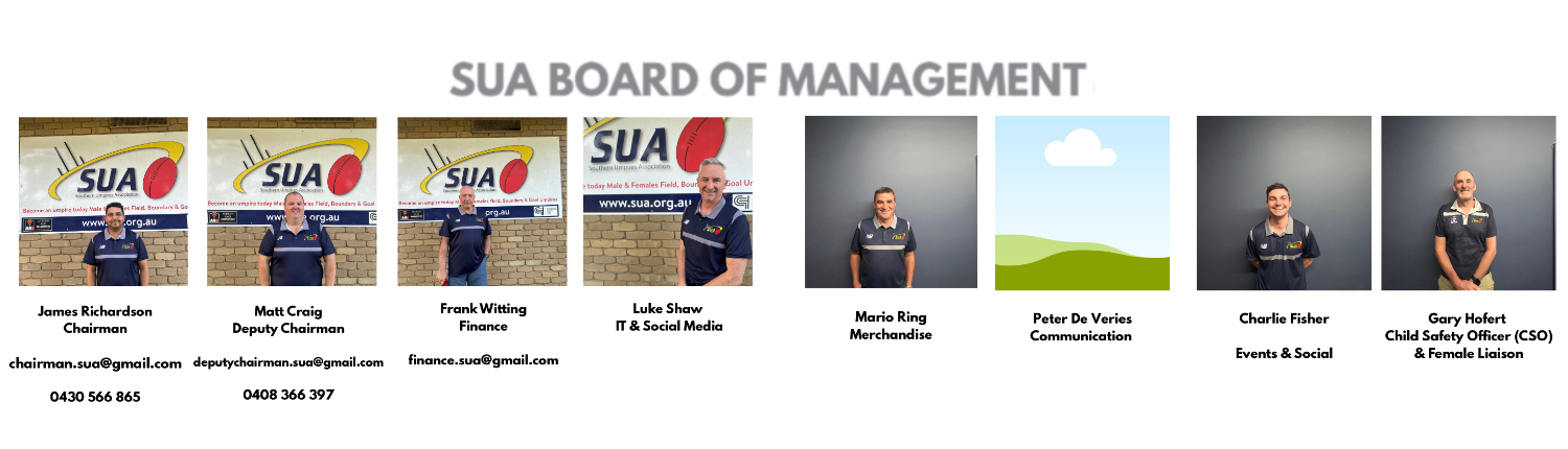 The Southern Umpires Association provides Australian Rules Football Umpires to the affiliated clubs that play in the following leagues: